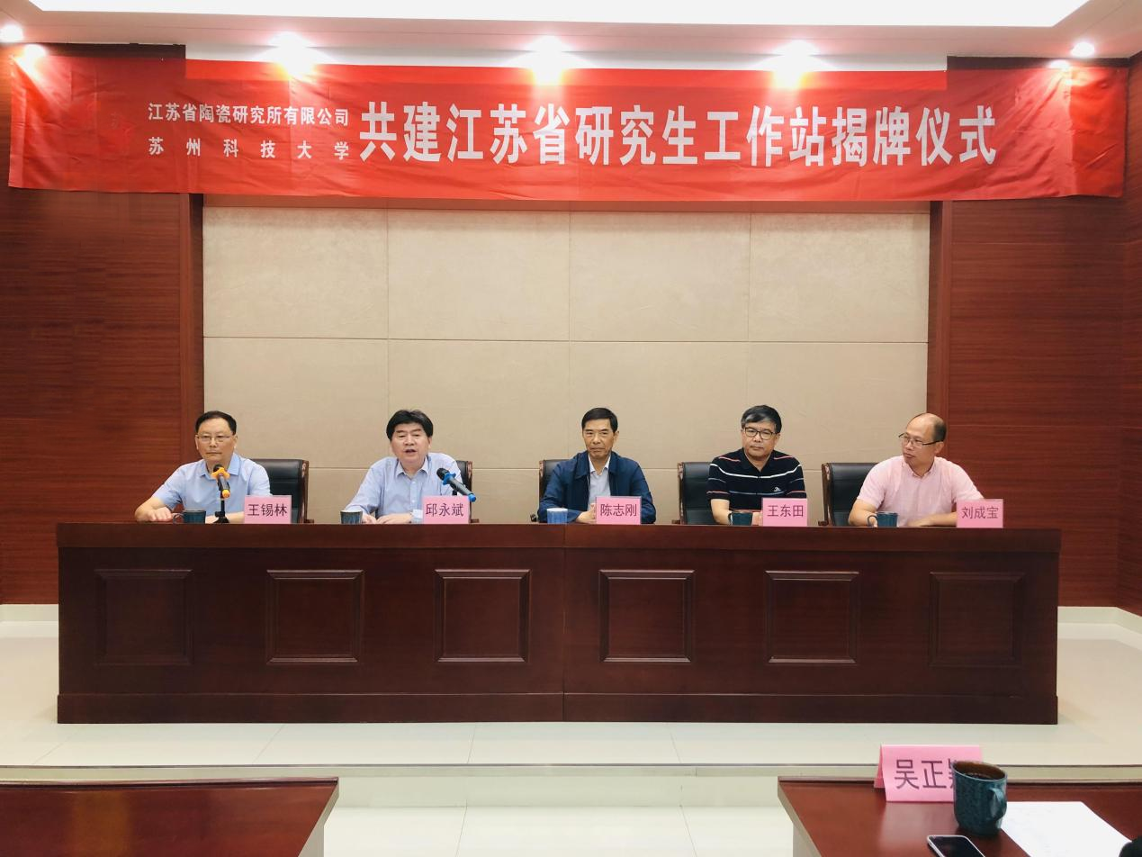 发布者:adminxq | 发布时间:2021-10-15 10月15日上午,江苏省陶瓷研究所有限公司与苏州科技大学共建江苏省研究生工作站揭牌仪式在公司隆重举行。苏州科技大学原党委书记陈志刚、研究生部学科办公室主任王东田、材料科学与工程学院副院长刘成宝等校方领导出…