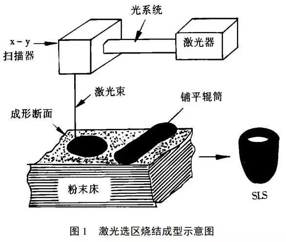 固体无模成型技术突破了传统成型思想的限制,是一项基于“生长型”的成型方法。这项以计算机为依托的成型技术,综合运用了机械、电子、材料等学科的知识,被称为自数控技术以来,制造技术的突破。其成型过程是先由CAD软件设计出所需零件的计算机三维实体模型,即电子模型;然后按工艺要求将其按一定厚度分解成一系列“二维”截面,即把原来的三维电子模型变成二维平面信息;再将分层后的数据进行一定的处理,加入加工参数,生成数控代码,在计算机控制下,外围加工设备以平面方式有顺序地连续加工出每个薄层并叠加形成三维部件。这样就把复杂的三维成型问题变成了一系列简单的平面成型。 实践表明,该技术在缩短产品开发周期,降低开发成本的效果是极其明显的。综合来看,这种技术具有以下显著的优点:高度柔性、技术的高度集成、快速性、自由成型制造、材料的广泛性。下面着重介绍8种典型的陶瓷快速无模成型工艺。 1、激光选区烧结成型(SLS) 在SLS中,首先将粉料辅在工作平台上,然后利用计算机控制的激光束扫描特定区域的粉末,使该区域的粉末受热熔融从而逐层粘结固化。当这一层扫描完毕后,添加新一层的粉料,继续重复上述工作,终形成三维部件。一般经SLS加工的陶瓷坯体致密化程度较低,需要后续的烧结处理。
