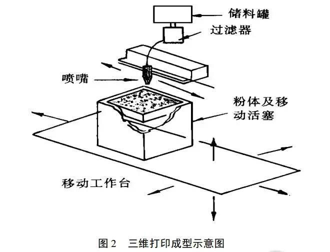 2、三维打印成型(3DP) 3DP的成型过程与SLS相似,只是将SLS中的激光变成喷墨打印机喷射结合剂。该技术制造致密的陶瓷部件具有较大的难度,但在制造多孔的陶瓷部件(如金属陶瓷复合材料的多孔坯体或陶瓷模具等)方面具有较大的优越性。