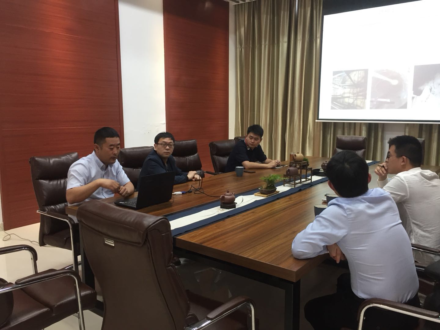 下午,公司邀请了中电华恒(南京)能源研究院的院长助理郭寰宇、宜兴孚雷姆环境科技有限公司经理杨力、宜兴市集创新材料科技有限公司总经理刘洪岩、奥柏尼(无锡)光电技术有限公司技术总监张庆进行项目对接会,希望通过简洁明了的介绍,让双方快速了解项目的优势技术和产品,为下一步开展深入合作奠定契机。