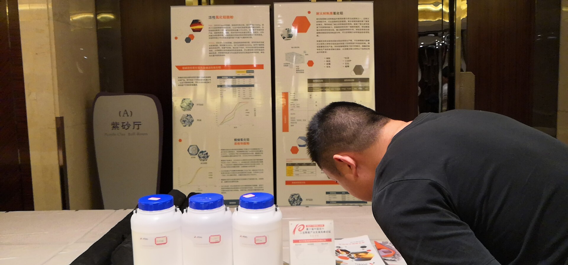 在论坛的展览会场上,入孵项目:宜兴市集创新材料科技限公司和宜兴孚雷姆环境科技有限公司都分别展出了具有优势技术的产品,吸引参会人员在展台前驻足交流。