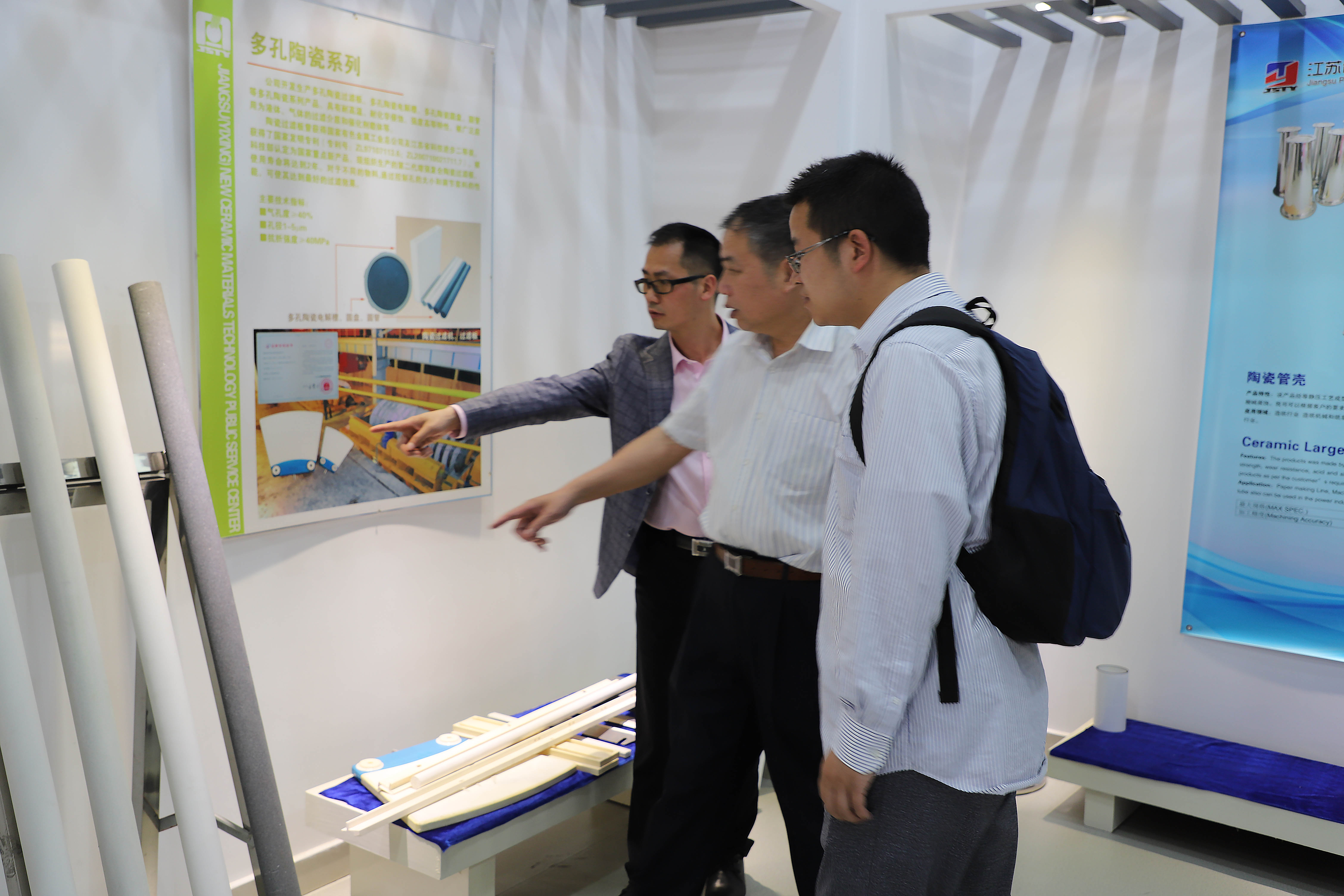在公司的会议室,何总向专家组全面介绍了母公司江苏省陶瓷研究所有限公司的发展概况,梅总对陶誉科创孵化器的情况进行了简要的汇报。在听取汇报后,专家组就各自的技术和公司产品进行了意见交换,互相了解行业目前的理念和发展应用前景,希望围绕项目孵化开展下一步的合作。