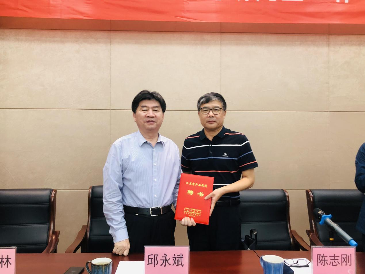 王东田主任为邱永斌董事长颁发江苏省产业教授聘书 |