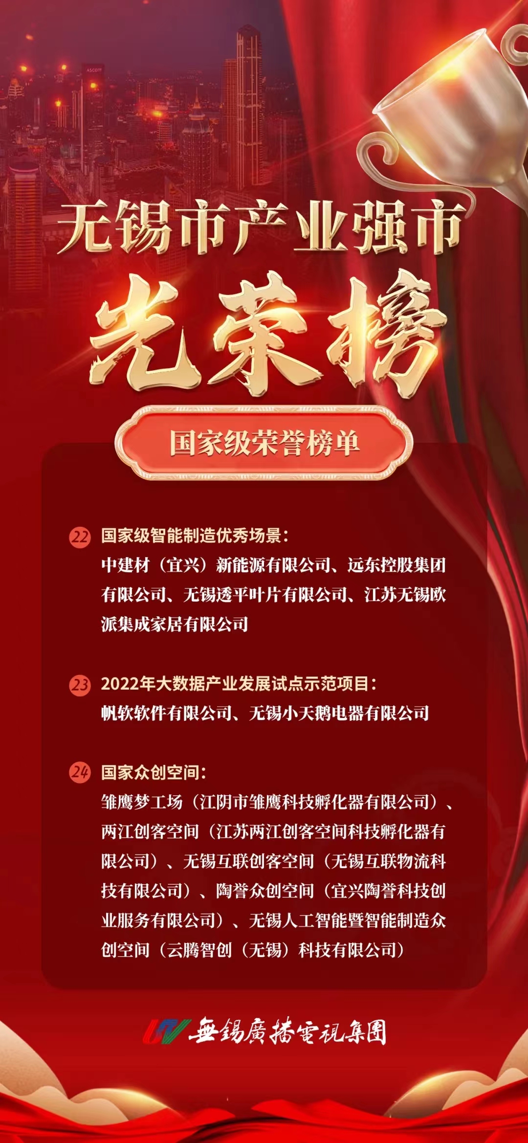 | 陶誉科创荣登无锡市产业强市光荣榜 |